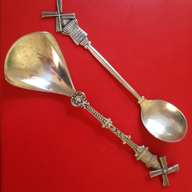 I have recently mourned the loss of a particular family teaspoon – Dutch, with a moving windmill. My father, a Dutchman, used to use it for the sugar he heaped on his buttered rusks in the morning at breakfast time. On mentioning that to my daughter about 3 years ago, she bought me one on eBay. It’s lovely. On a recent visit to my sister she produced the very spoon that had gone missing, and gave it to me. When I examined them together, I noticed that the one my daughter bought was a memento from the Open Air Museum in Arnhem – I went there on my honeymoon in 1978. To cap that, my ex-husband also found the one we had in our own home and is sending it back. Of course I had left mine behind in the sugar bowl – I don’t use sugar! Next step is to ask my family in Holland and USA if they also have one of these spoons.