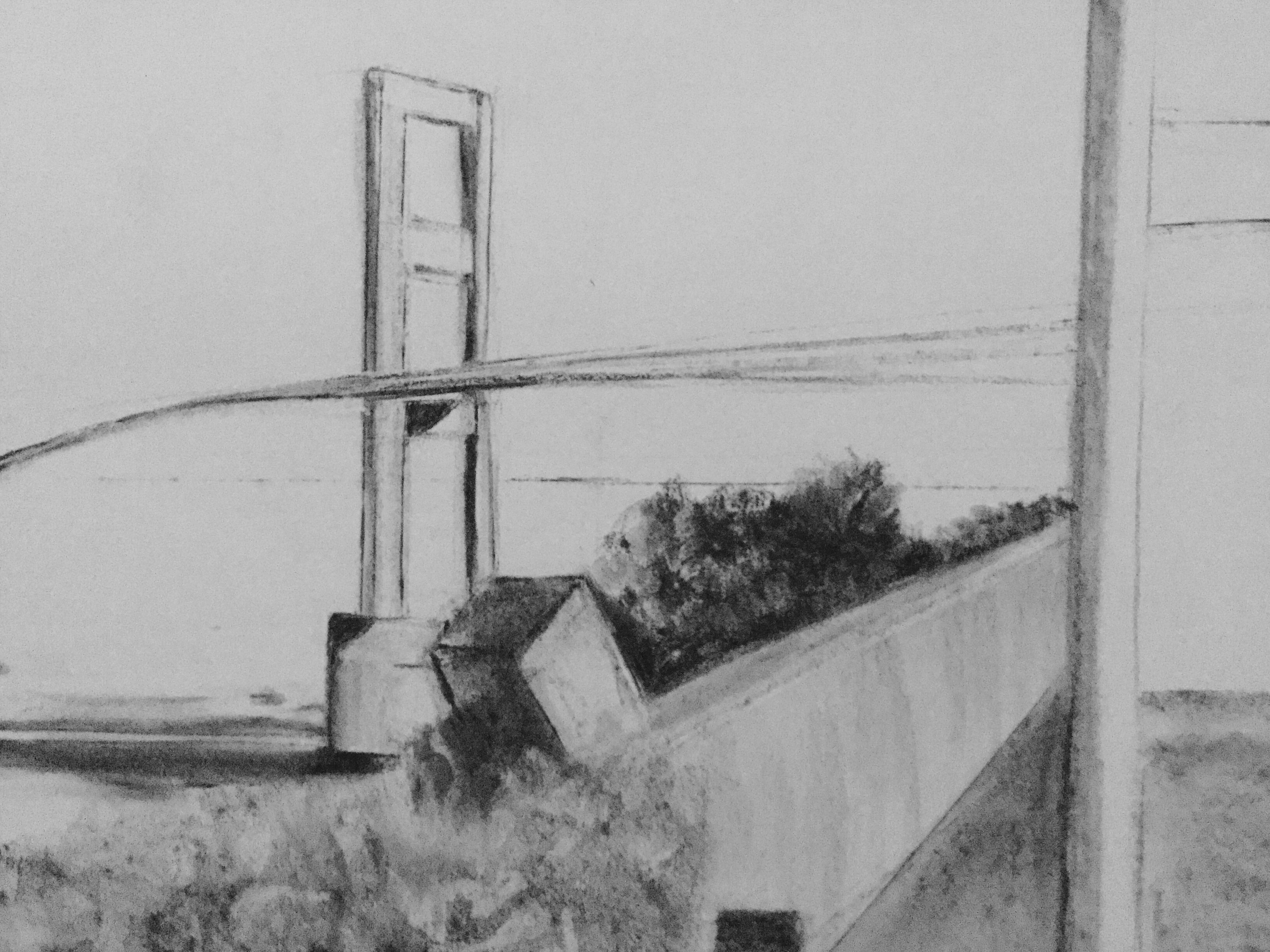 The drawings are progressing slowly, partly because the light has been very variable today, and I need light to see subtle nuances of my mark making. And, if I am to be horribly honest, I have got a little frustrated by mapping out the drawings because they are the only ones that are heavily architectural. They are based on photos underneath the Severn Bridge at each end. I love a rich, expressive mark-making process, a gesture, a smear. Highly engineered objects, like this bridge, need straight lines, right angles, parallel sides. Oh how I struggle with these things. So I'm sharing this with you, just to prove that every artwork has blood or tears shed because of it. Nothing is ever easy.