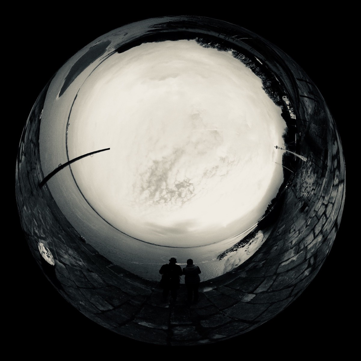 There was nobody else in sight. The snow was fell gently, the scene disturbed only by the occasional fly-by of terns or egret. I set up my tripod, worrying a bit whether, like my fingers, the three hundred and sixty degree camera would suffer and struggle to function. Clipped onto the tripod safety and planted with all three legs deep into the snow drifts, I felt it was securely stable against the wind. Inside its little Lycra sleeve, it would be ok, after all, Lycra keeps surfers and divers warm. I set the kit up ready to shoot and stood there, waiting, rubbing my hands vigorously and stamping my feet as I gazed downriver.