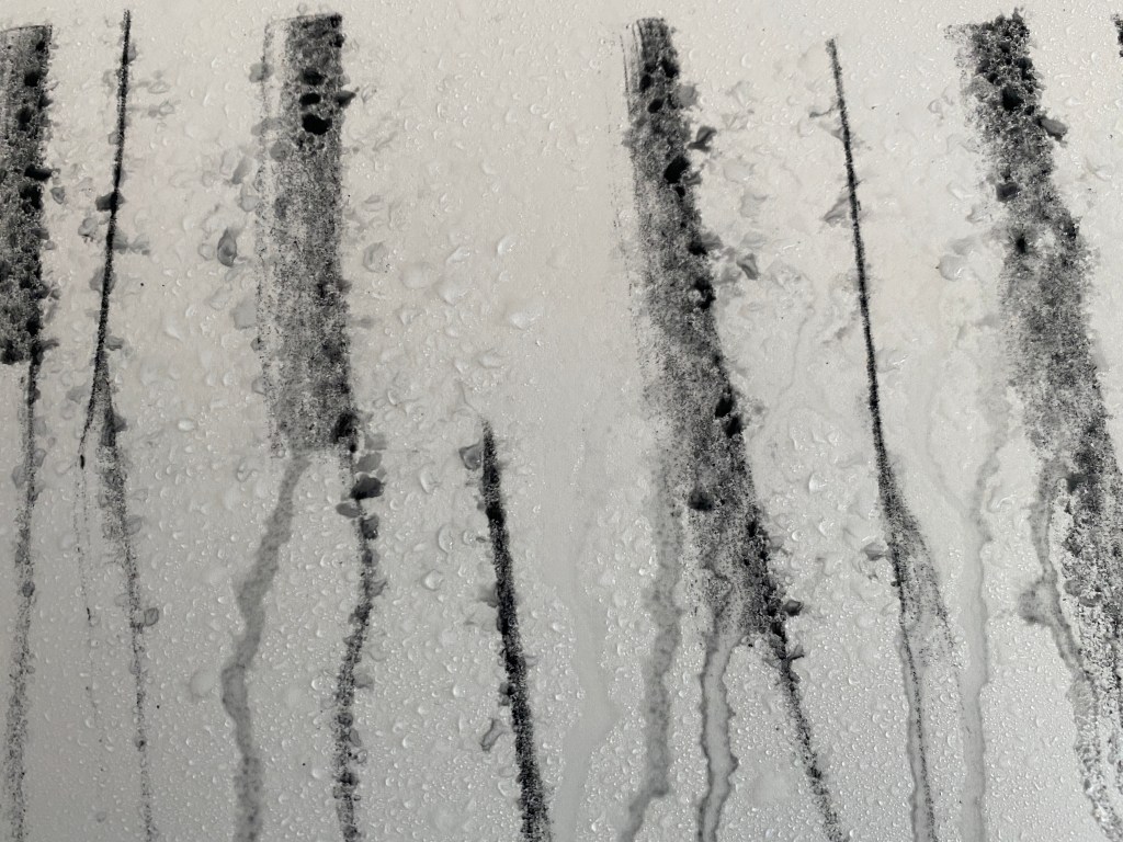 Another thing I did for the first time during the drawing breath weekend was to draw my breath with my eyes closed, using dry watercolour crayons onto paper fixed on the wall, then sprayed it with water. Like the water in the vase, the pigment was released, creating streams and drips which represented my breath flow.