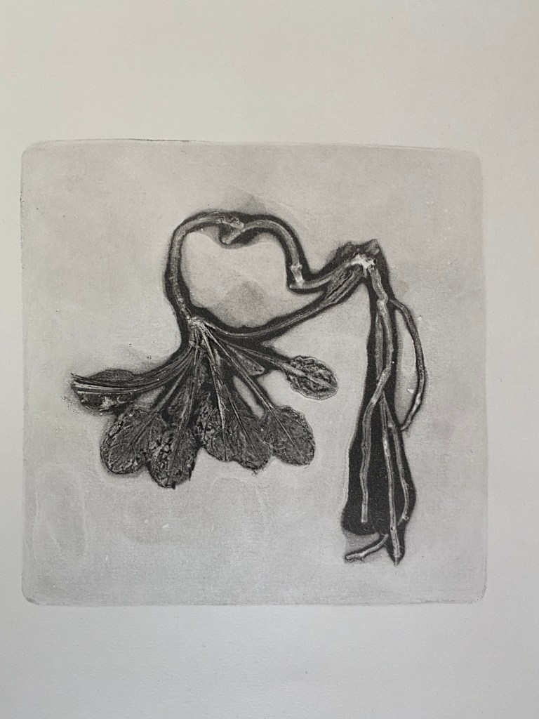 I haven’t identified them yet – one is chickweed and another looks like it belongs to the dandelion family. The prints are beautiful, but they come with a barb. They may be the equivalent of death masks, of final traces of a species under threat. I am pretty sure these ones are very common. And of course I can’t seek out the rarer species and dig them up. So these can only be metaphorical. They can tell the story, but only so far.