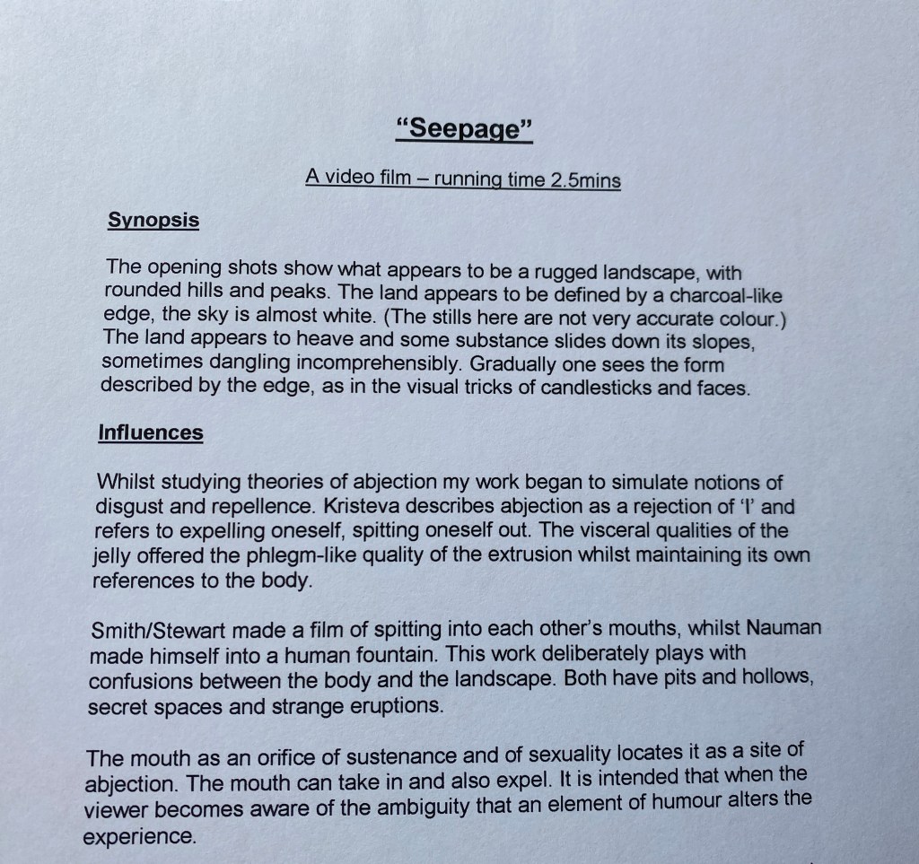 I find images of my very early films, in the 1990’s, made during my MA in Fine Art.