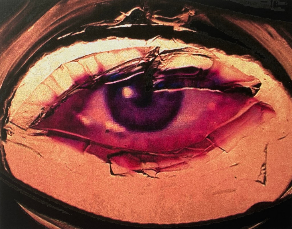 As I take photos of these old works, I hear Kentridge make a reference to the Bunuel film “Un Chien Andalou”. I remember it was that film that influenced the work “A Case of Vanity”. I was fascinated by the gaze at the time, and the corporeal and digital body. It showed the reveal of an image of an eye, that I had printed on a sheet of animal gelatine. It had shock value like Bunuel, but humour too. All of those works contained a sense of humour, which I have largely lost in my art over the years.