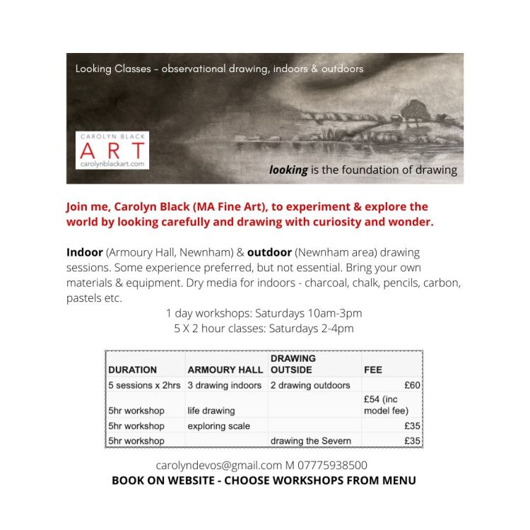 For those who love to immerse themselves in longer sessions, there are workshops from 10am-3pm. Many people ask me to run life-drawing sessions so I have booked a model in already for that. Other people asked for outdoor drawing, so I have slipped 2 of the course sessions into the open landscape and one of the day sessions too.